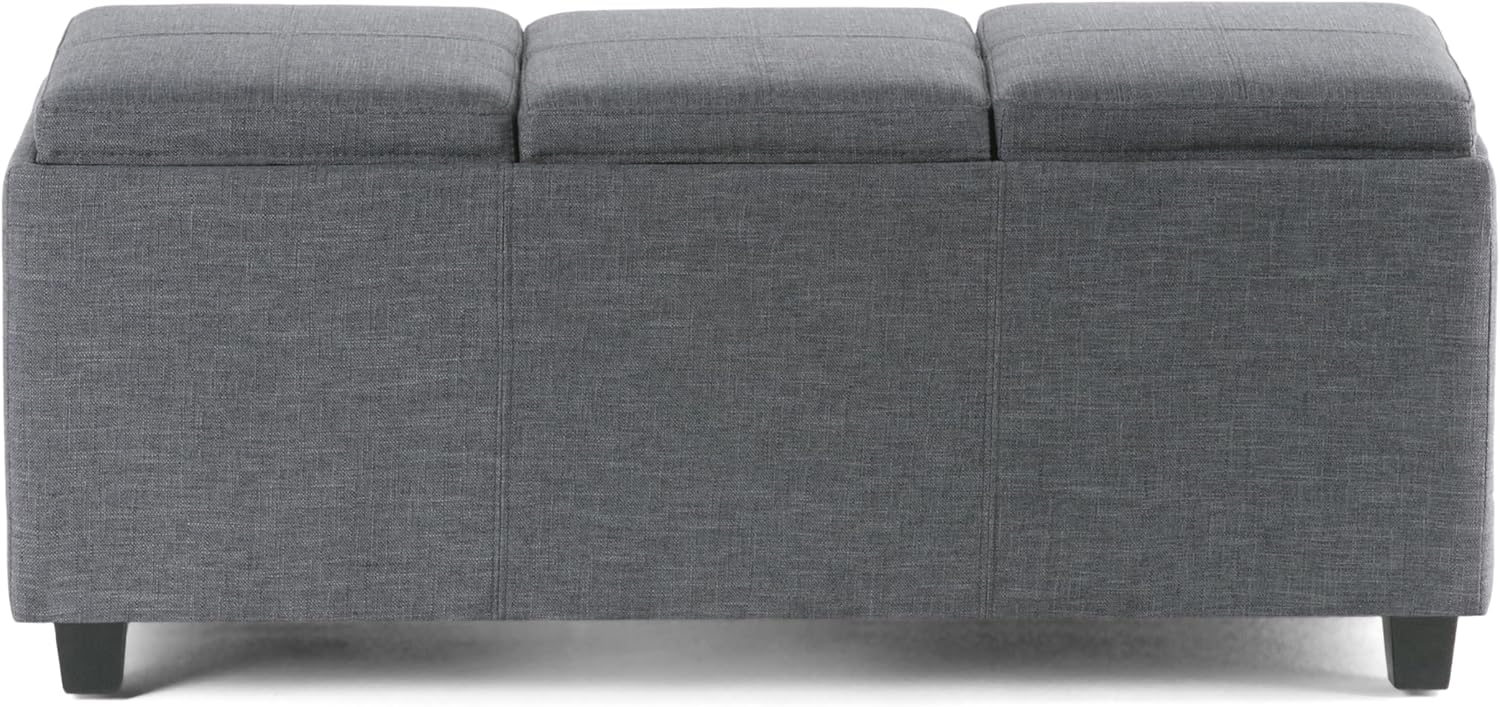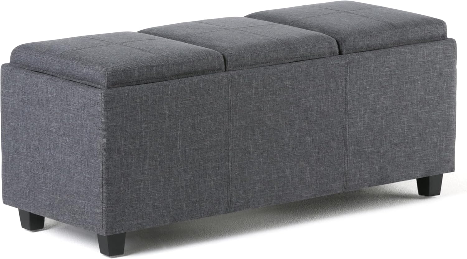 SIMPLIHOME Avalon 42 Inch Wide Contemporary Rectangle Storage Ottoman in Slate Grey Linen Look Fabric, Assembled, For the Living Room, Entryway and Family Room