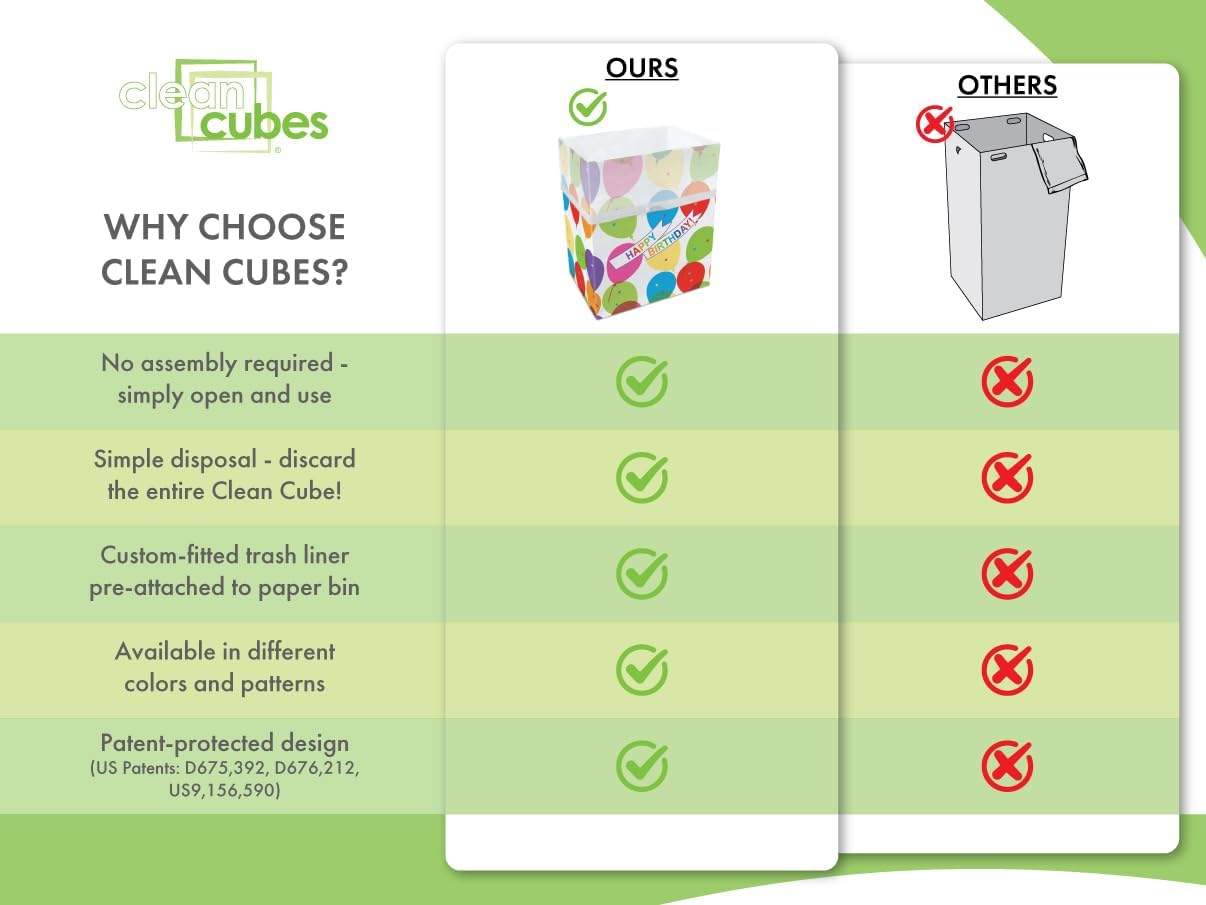 - ✅ 【EFFORTLESS CLEANUP & DISPOSAL】Simply unfold, use, and toss — keep your event clean and mess-free without extra effort. Clean Cubes are disposable recycling bins and trash cans with a patent-protected design and custom-fitted trash liner in each bin.