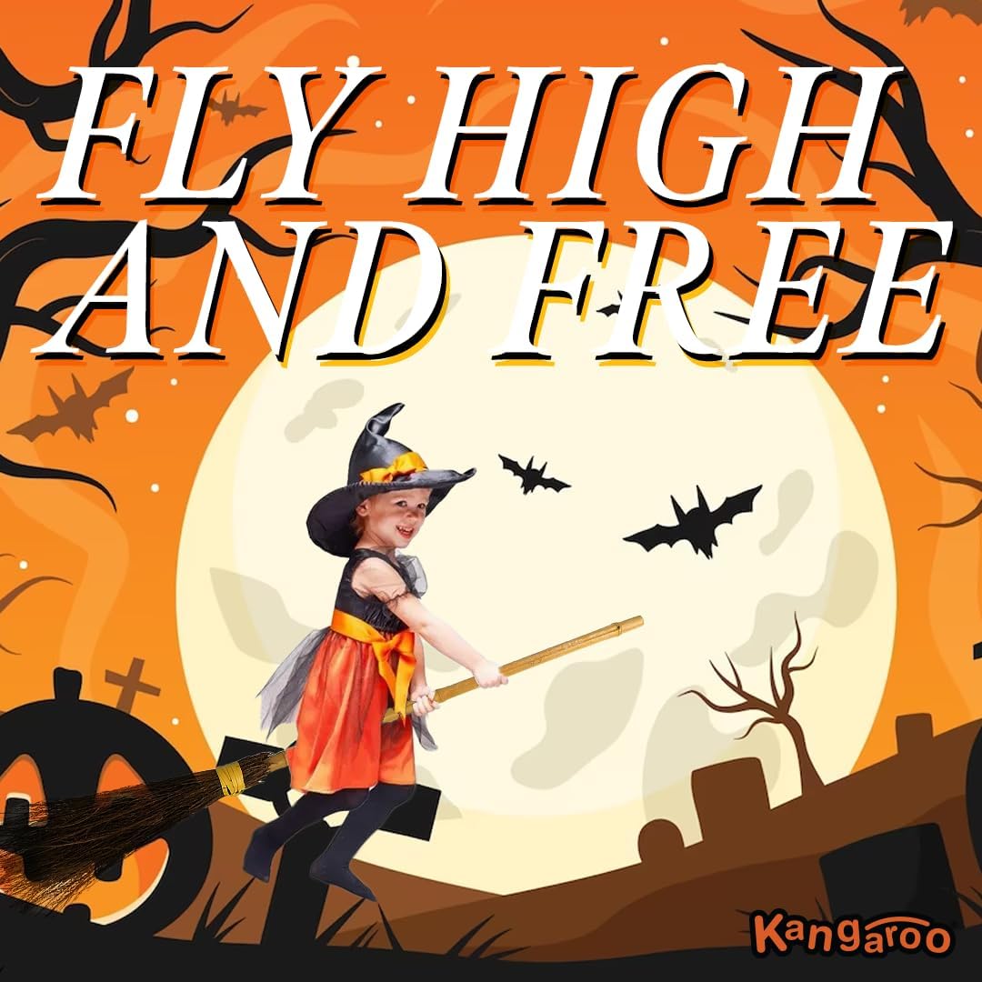 Kangaroo 36" Bamboo Witch Broom Prop - Wizard Staff Witch Broomstick Magic Broom for Kids, Teens & Adults - Halloween Porch Decor Front Outdoor Fall Decoration - Witches Costume Accessory