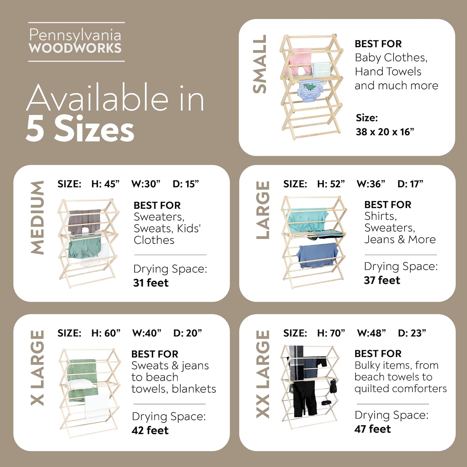 Pennsylvania Woodworks Clothes Drying Rack: Solid Maple Hard Wood Laundry Rack for Sweaters, Blouses, Lingerie & More, Durable Folding Drying Rack, Made in USA, No Assembly Needed, Medium