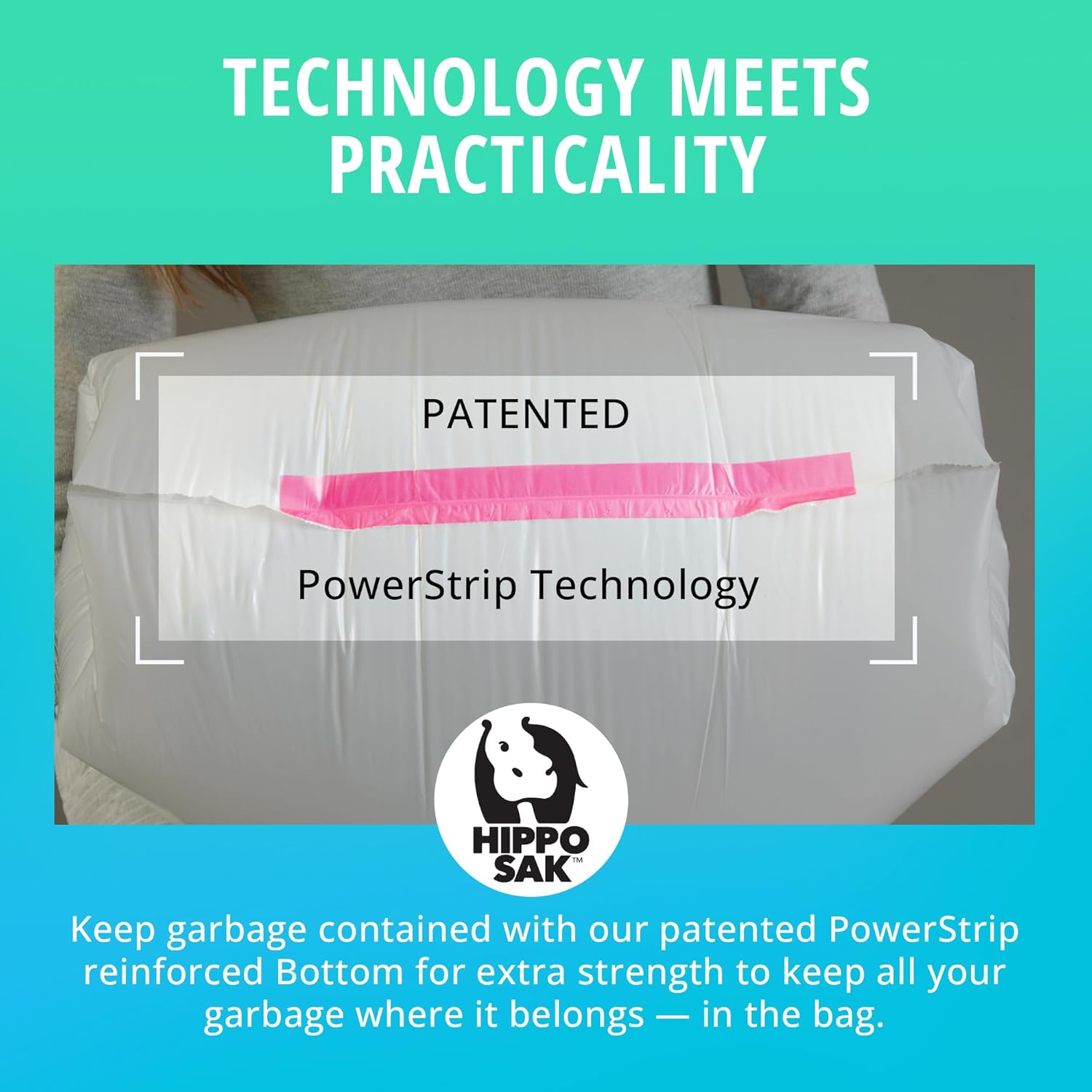 Hippo Sak - Plant Based Tall Kitchen Garbage Bags with Ergonomic Handles - 13 Gallon Trash Bags - Recyclable & Eco Friendly - Super Strong and Leak Proof Tall Kitchen Trash Bags (90 Count)