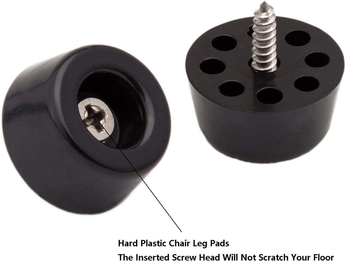 - 20 pieces black/plastic heavy duty furniture pads with screws.