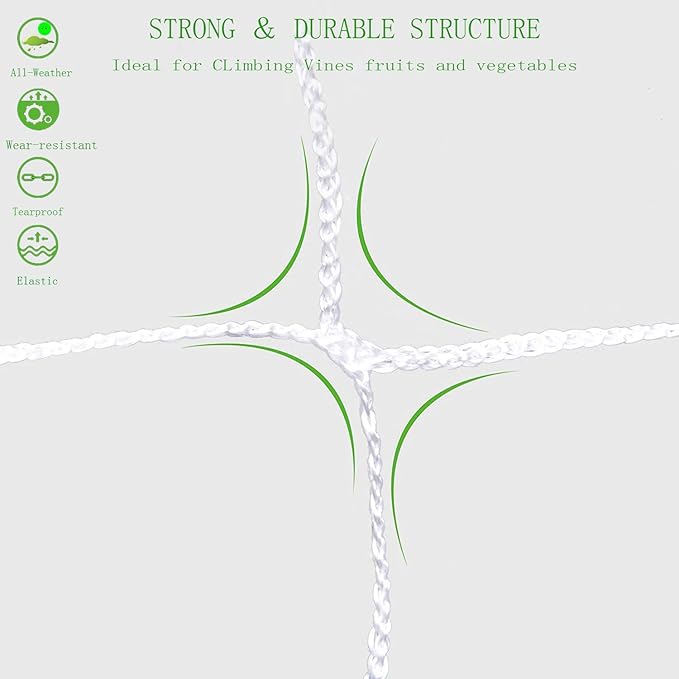 - 1.【QUALITY】Trellis Netting ,White ployester mesh has outstanding durability. Breaking strength supports extremely heavy crop loads.Prevent animals from damaging the plants