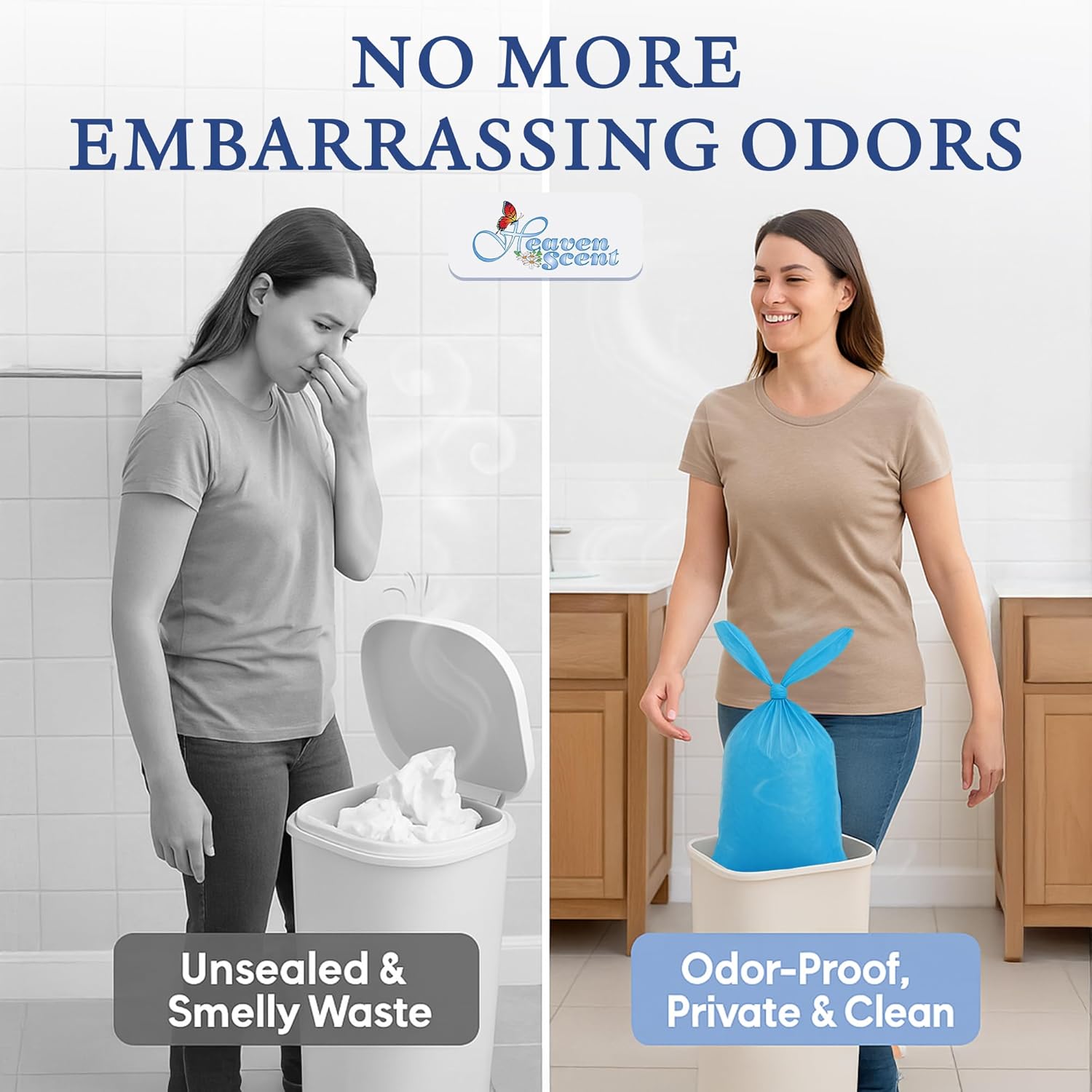 - LEAK-PROOF AND NO TEARING, Heaven Scent Hygiene scented trash bags are 1.5 mil thick, designed for diaper trash bags on the go; effectively seals in odors to keep your environment fresh; perfect for busy parents managing dirty diaper bags, disposable
