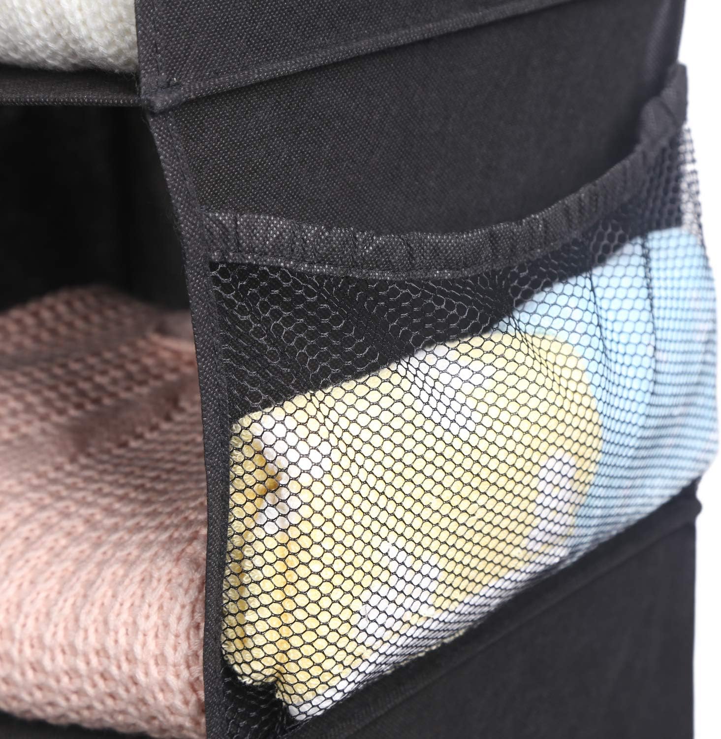 - CONVENIENT DESIGN: There are 2 mesh pockets; 1 on each side of the hanging closet for storing smaller such as small bags, socks, slippers, ties, belts, beanies, jewelry.