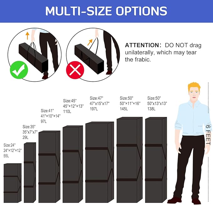 - LARGE CAPACITY: INFANZIA large-capacity duffle bag is one of the essential items for your travel. It can be used to store tents, clothing, sports equipment or foldable strollers. INFANZIA travel bags are available in 47*15*17 Inch/120*38*43 CM size to meet your travel needs