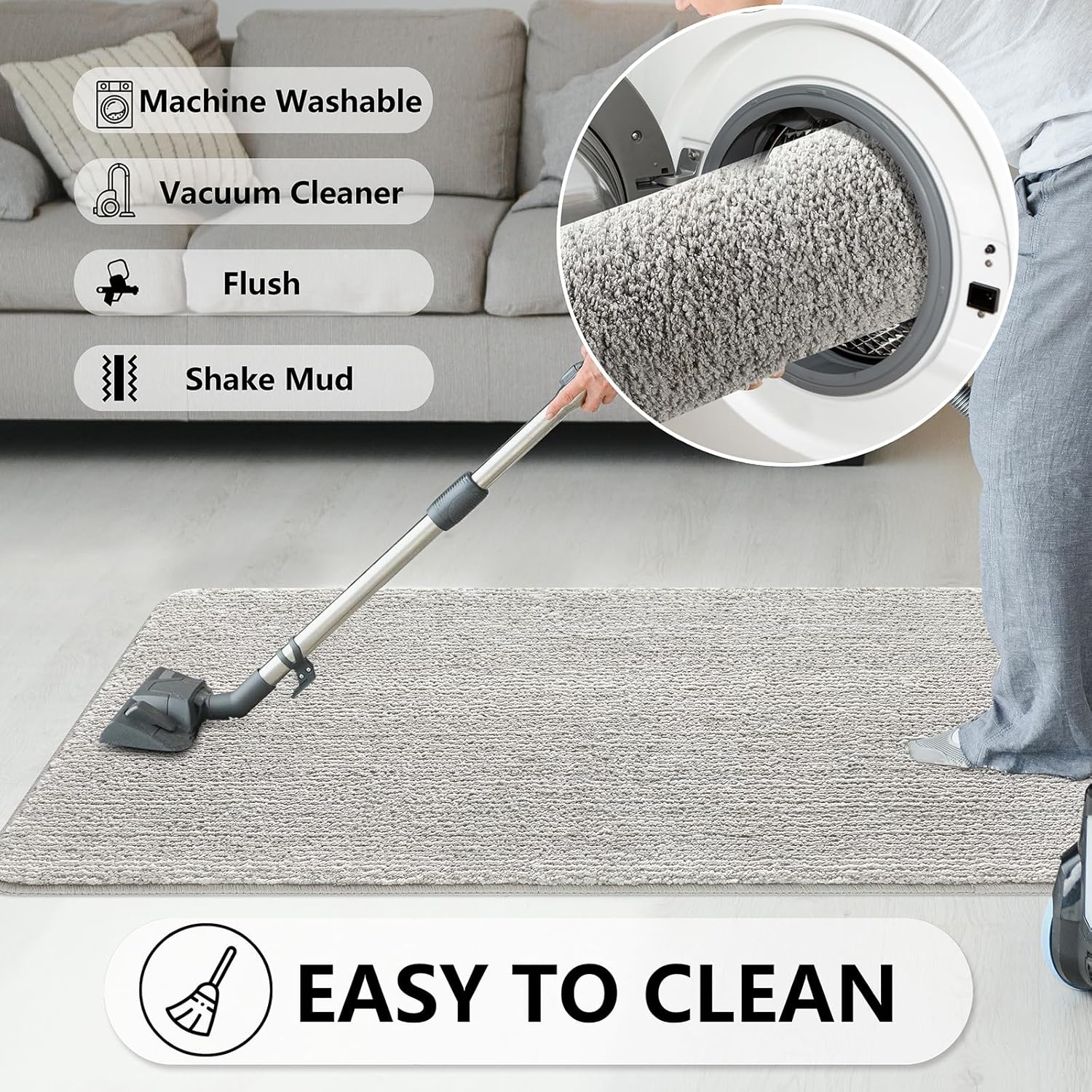 REFETONE Indoor Doormat, Front Door Mat 24"x36" Absorbent Rubber Backing Non Slip Back Door Mats, Washable Low-Profile Inside Floor Mat Door Rugs for Entryway, Resist Dirt Mud Mat for Dogs, Grey