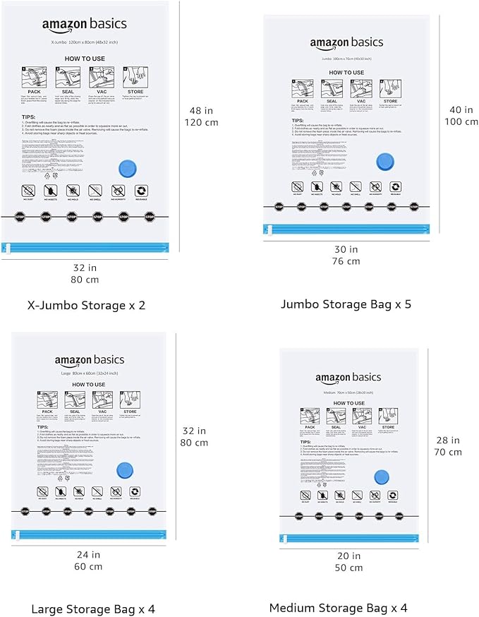 - Heavy-duty double-zip seals and triple-seal turbo valve for lasting airtight protection; follow instructions printed on storage bags to ensure correct sealing when using