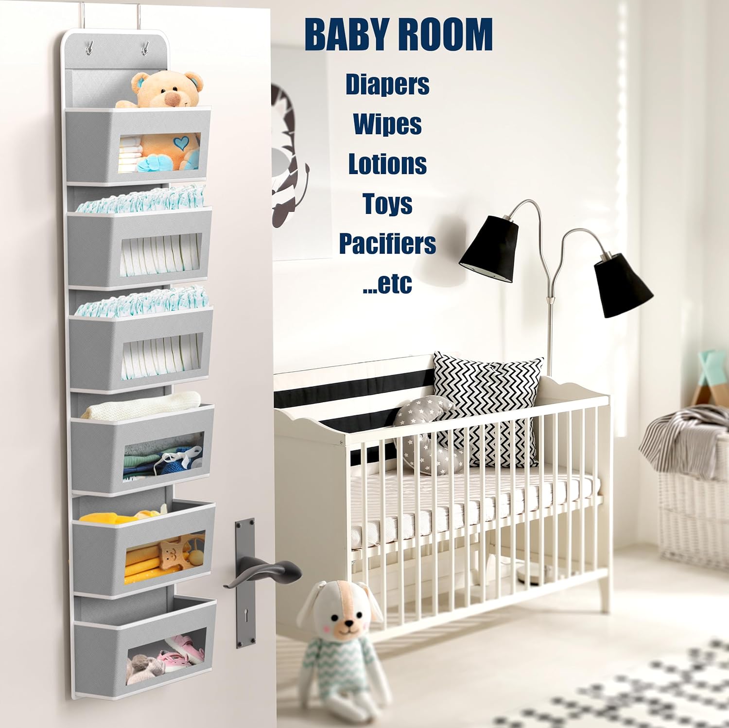 SIMPLE HOUSEWARE 6 Clear Window Pocket Over Closet Door Storage Hanging Organizer for Bedroom, Bathroom, Pantry, Gay