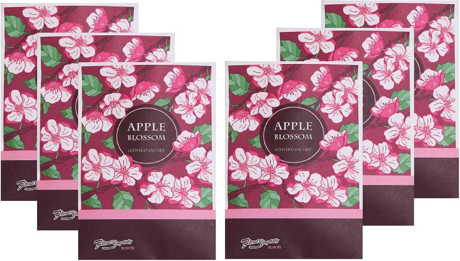 Floral Simplicity Apple Blossom Scented Sachets Pack of 6, Fall & Winter - Long-Lasting Scented Bags, Home Fragrance, Air Freshener & Deodorizer for Closet, Room, Drawer, or Cars, Made in The USA