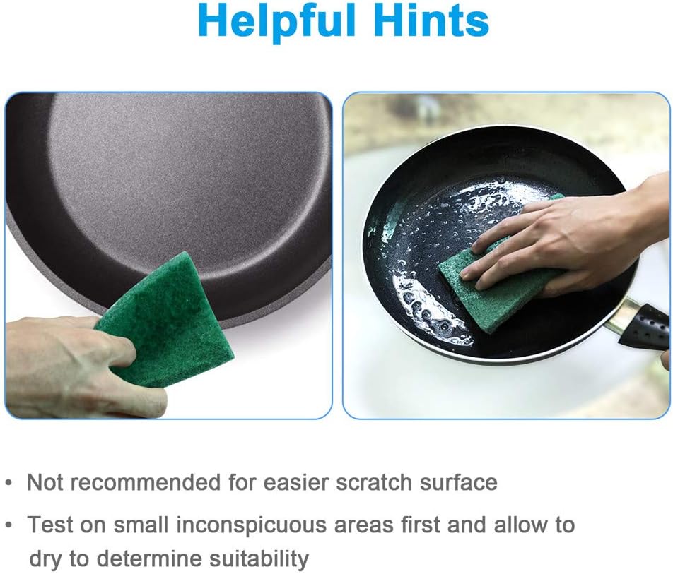 - MUTIPURPOSE: Scour pads are widely used in kitchens, garages and garden tools to replace steel wool and sponge. It's great for cleaning pots, pans, sinks, bathrooms and competent in scrubbing stove burners, broilers, grills and garden tools