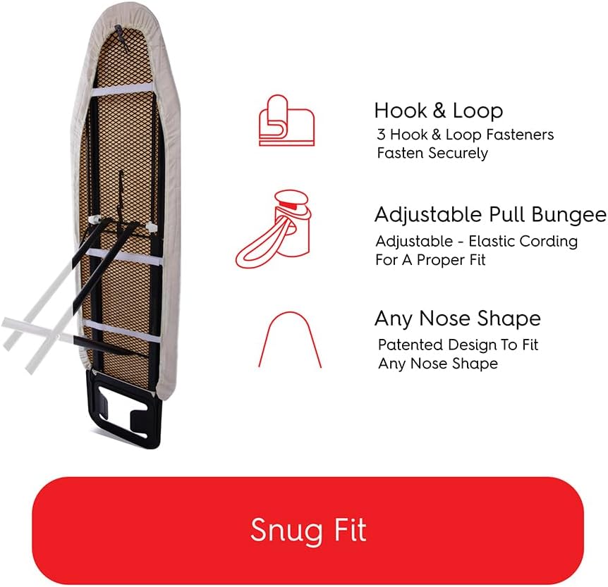 - Durable: heavy duty ironing board cover with extra thick 3 layer padding with aluminum, an inner foam layer and felt under padding. Cover is scorch, water and stain resistant for long lasting use