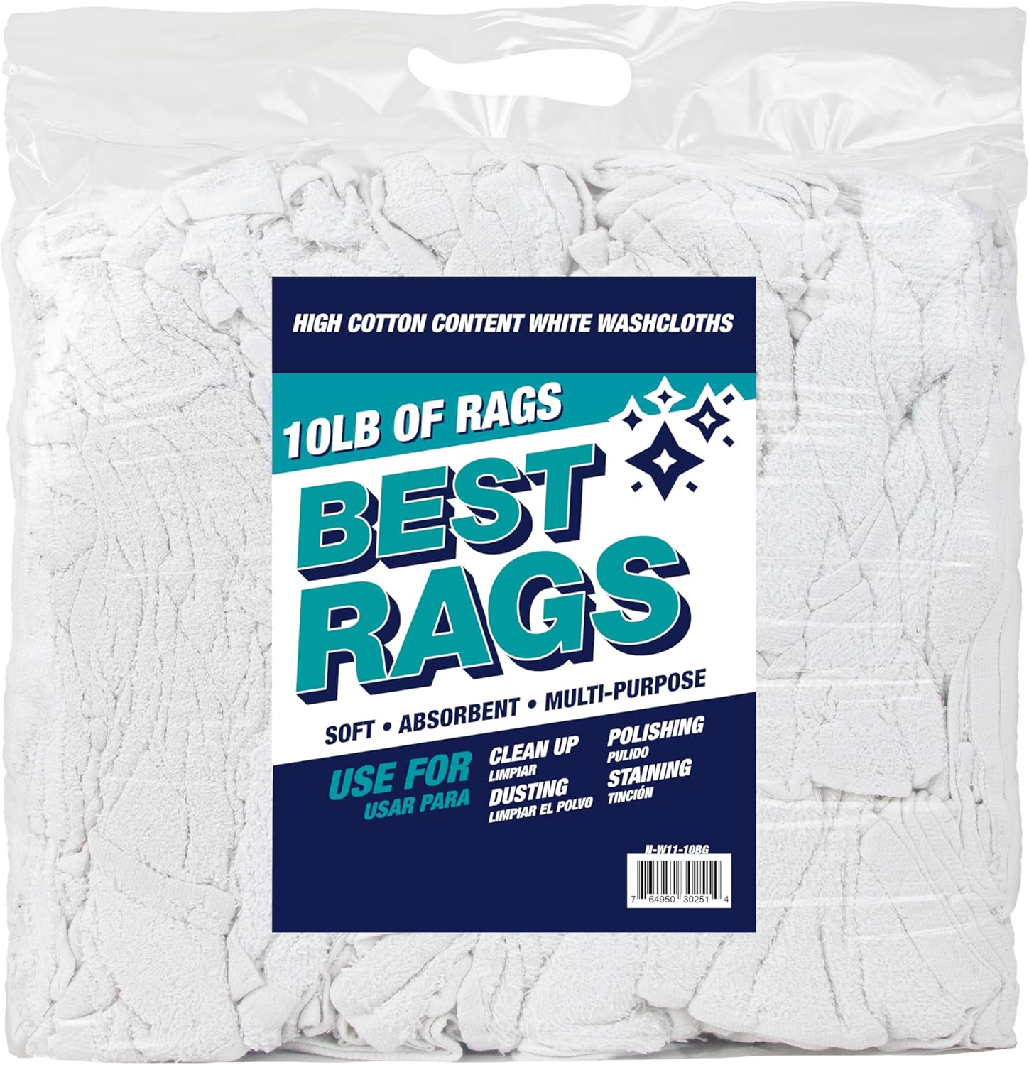 - DURABLE CLEANING SUPPLIES: These white terry cloth rags are discarded as irregulars during the washcloth production process. Use them around the home to clean up spills, grease, grime, and oil. Remove dirt from tools, paint from brushes, and to detail cars. These bulk terry towel cleaning rags are hearty and will not let you down.