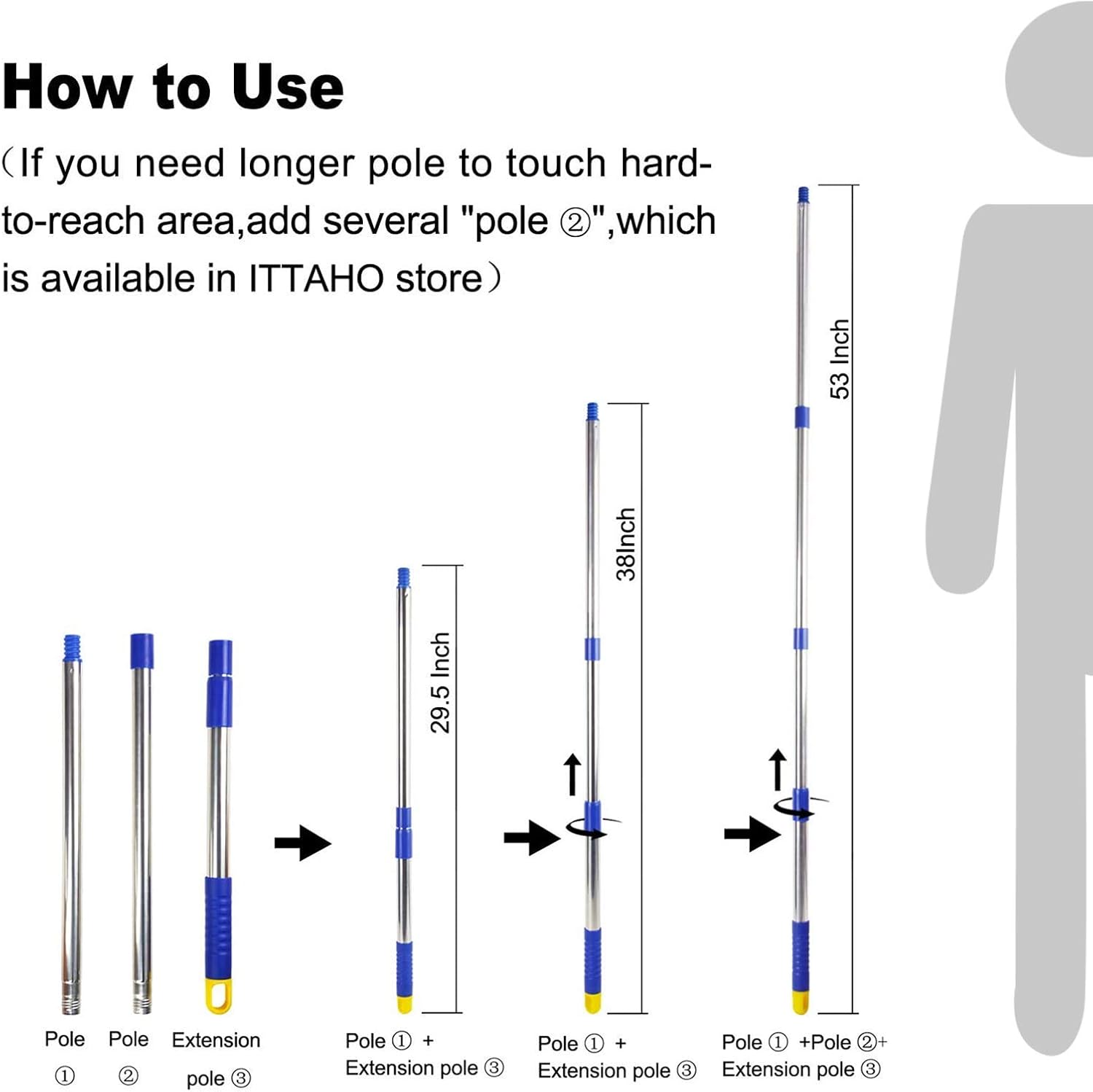 - ITTAHO Excellent Customer Service:What you get: 1 x ITTAHO Scrub Brush, 3 x Stainless Steel Pole, 1 x Small Cleaning Brush. We,ITTAO deck scrubber are committed to meeting customer demands to supply high quality household cleaning products. Please feel free to contact us at any time if you have any problem,suggestion and request with ITTAHO products ,we will reply you within 24 hours