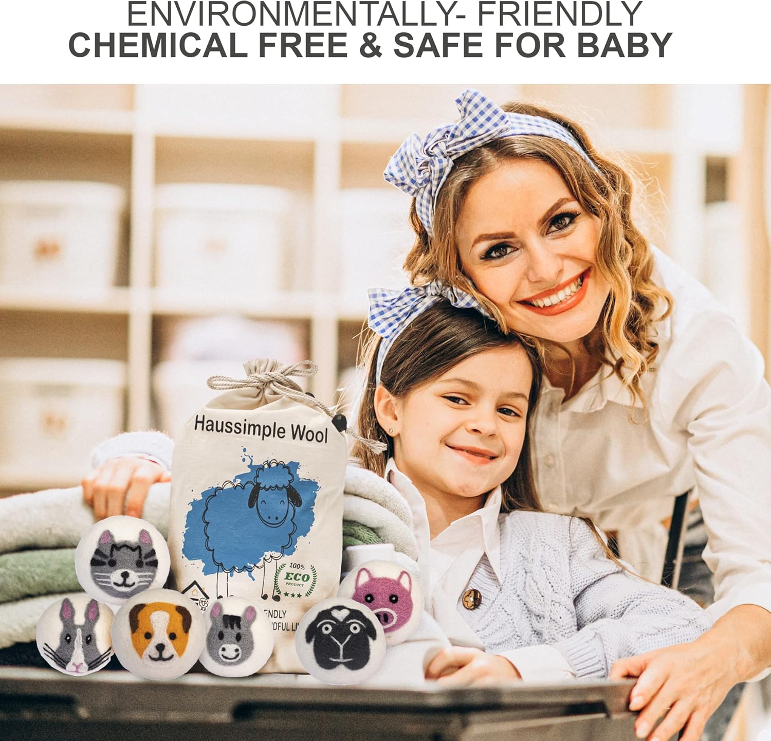 Wool Dryer Balls β 6-Pack XL Organic Fabric Softener | Natural Handmade Sheep Wool | Reusable, Anti-Static, Lint & Wrinkle Remover | Safe for Baby & Sensitive Skin (Farm)