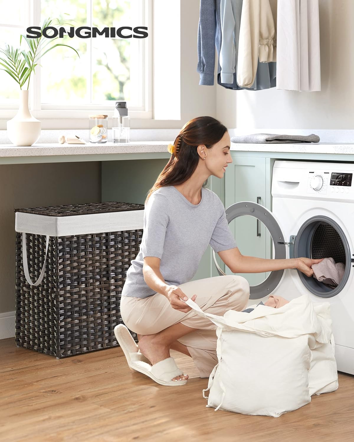 - [Stable Steel Frame & Breathable Synthetic Rattan] Crafted with a sturdy steel frame and select synthetic rattan, this laundry hamper with lid is stable, waterproof, breathable, and can stay dry in humid environments