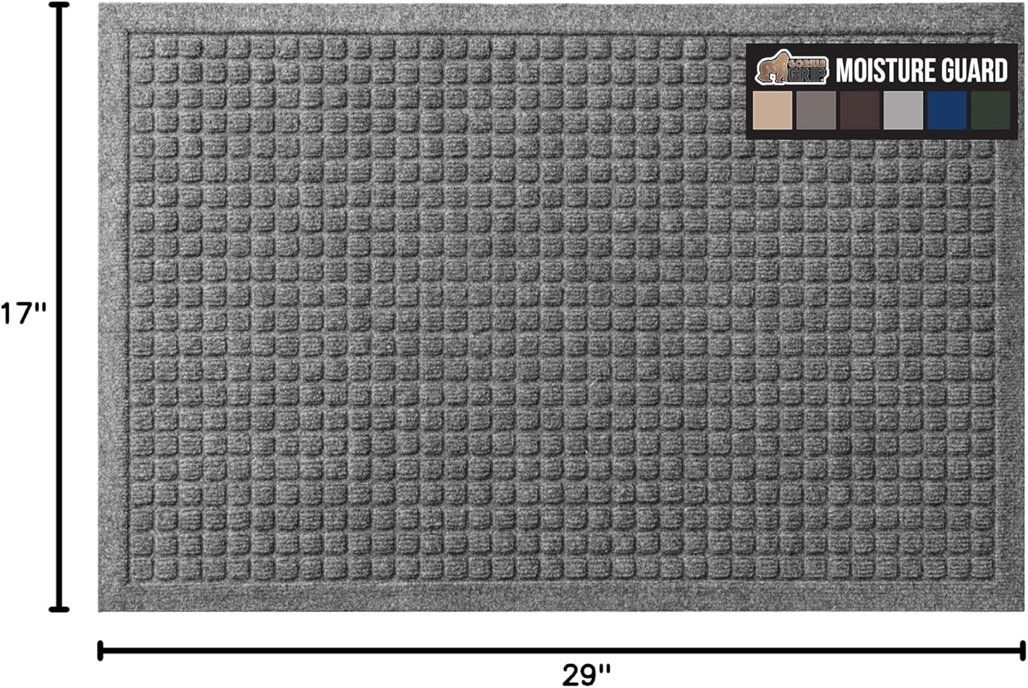 GORILLA GRIP Front Door Mat, Indoor Outdoor Ultra Absorbent HydroAbsorb Doormat, Absorbs Up to 1.7 Cups of Water, Stain and Fade Resistant, Rubber Backing Doormats, Captures Dirt, 29x17 Gray