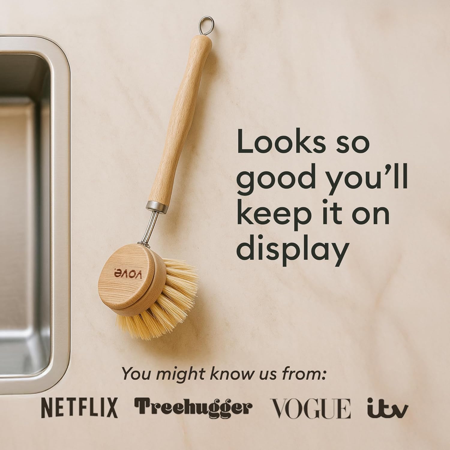 - THE VOVE DIFFERENCE: Experience the perfect balance of sustainable materials, superior cleaning performance, and thoughtful design with Vove's bamboo dish brush.