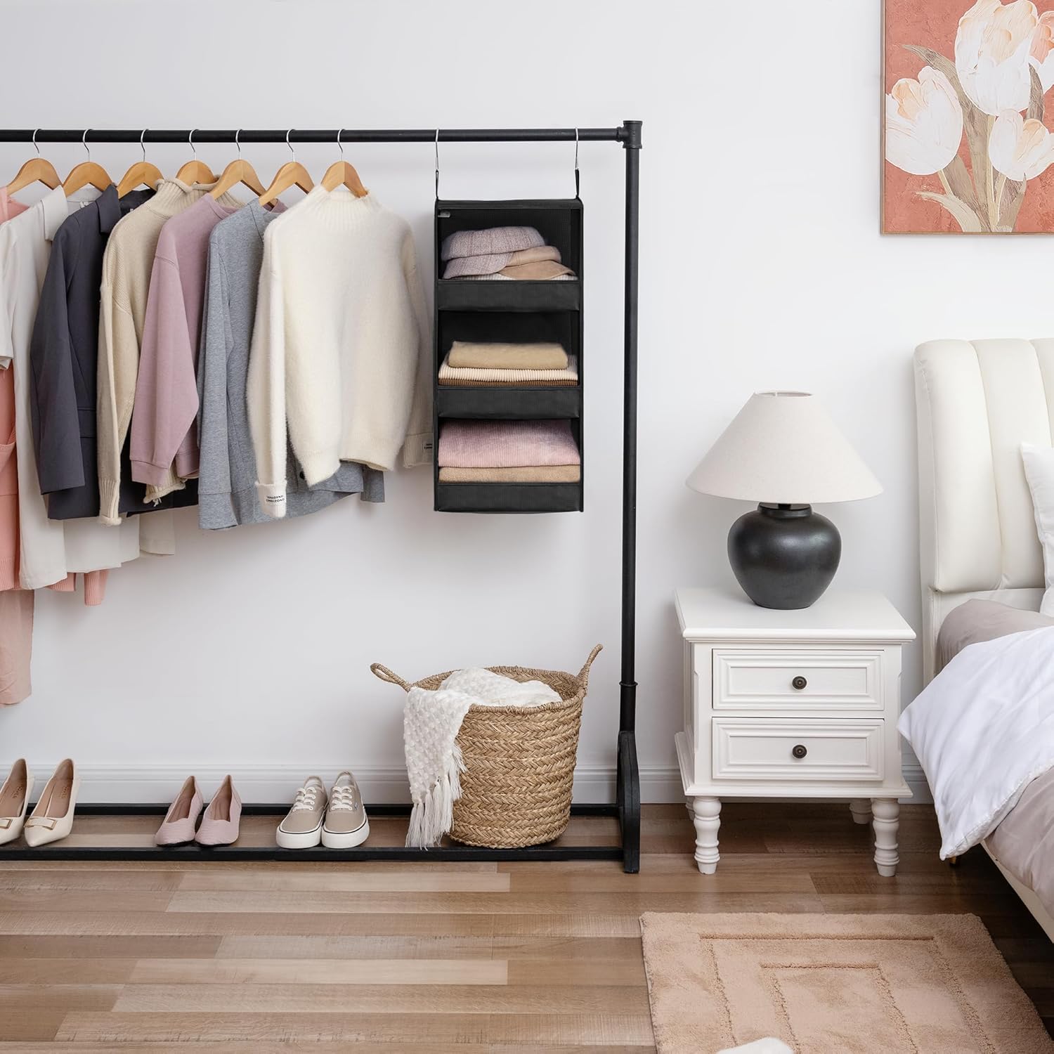 GRANNY SAYS 3-Shelf Hanging Closet Organizer, Collapsible Closet Hanging Shelves, Nursery Hanging Organizer, Black, 29 ½" H X 12" W X 12" D, 1-Pack
