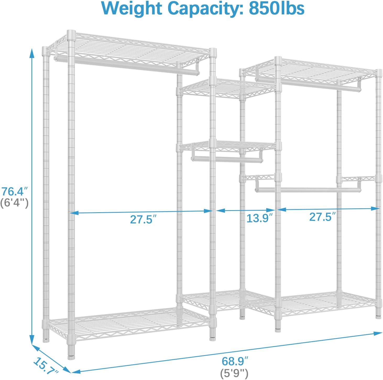 VIPEK Classic V6 Wire Garment Rack 5 Tiers Heavy Duty Clothes Rack for Hanging Clothes, Wardrobe Racks Compact Large Metal Clothing Racks Freestanding Closet Storage Racks, Max Load 850LBS, White