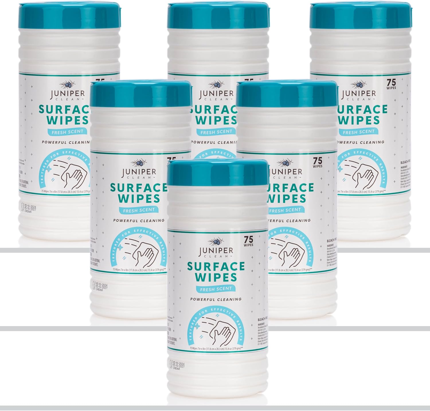 6 Pack Surface Cleaning Wipes Bleach Free, All-Purpose Cleaner for Bathroom, Kitchen, Office, 450 Count Canister, 7.5" x 7" Sheet, Fresh Scent, Lint Free & Durable