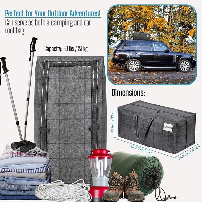 - Clear Tag Pocket & Wide Opening β Say goodbye to the frustration of searching for your belongings. Make a custom label and insert it into the clear tag pocket for easy identification of items like blankets, bedding, pillows, and clothes. Remember to use this labeling feature for organizing college dorm room essentials, moving to a new home, or storing items in the garage. The bag is equipped with dual extended zippers, creating a wide opening that allows for effortless access to stored items.