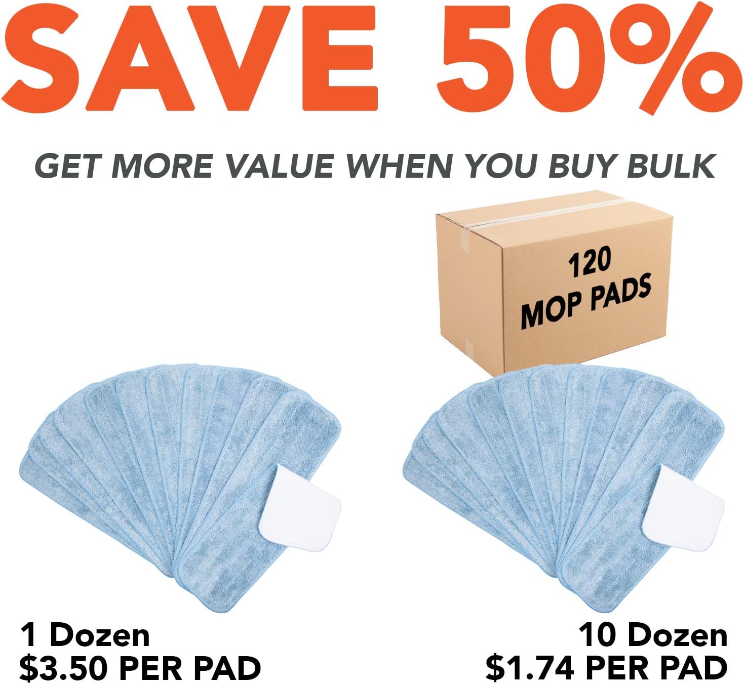 Arkwright Spray Mop Replacement Pads - (Pack of 12) Bulk Microfiber Flat Dry and Wet Refill Mop Pads Floor Cleaning, Compatible with Bona and Rubbermaid, Fits All Mop Heads, 18 in, Blue