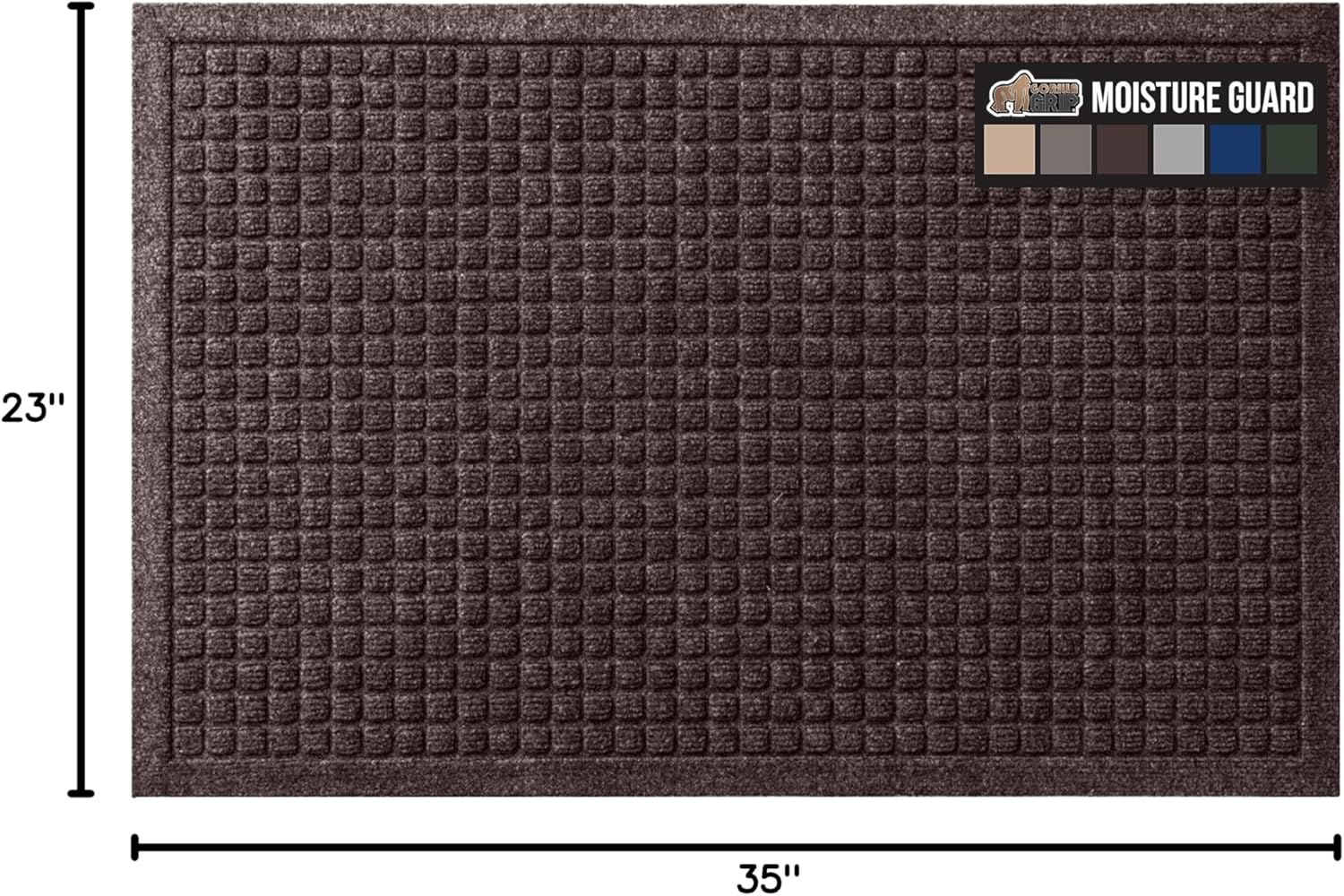 GORILLA GRIP Front Door Mat, 35x23, Indoor Outdoor Ultra Absorbent HydroAbsorb Doormat, Absorbs Up to 5.7 Cups of Water, Stain and Fade Resistant, Rubber Backing Doormats, Captures Dirt, Coffee