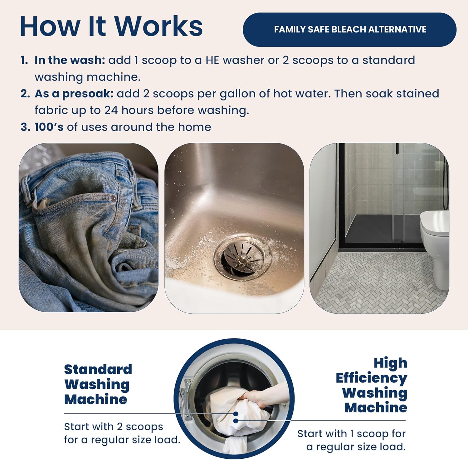 - SODIUM PERCARBONATE FORMULA: Utilizes a safe and effective alternative to chlorine bleach, delivering powerful cleaning results while being gentle on your fabrics.