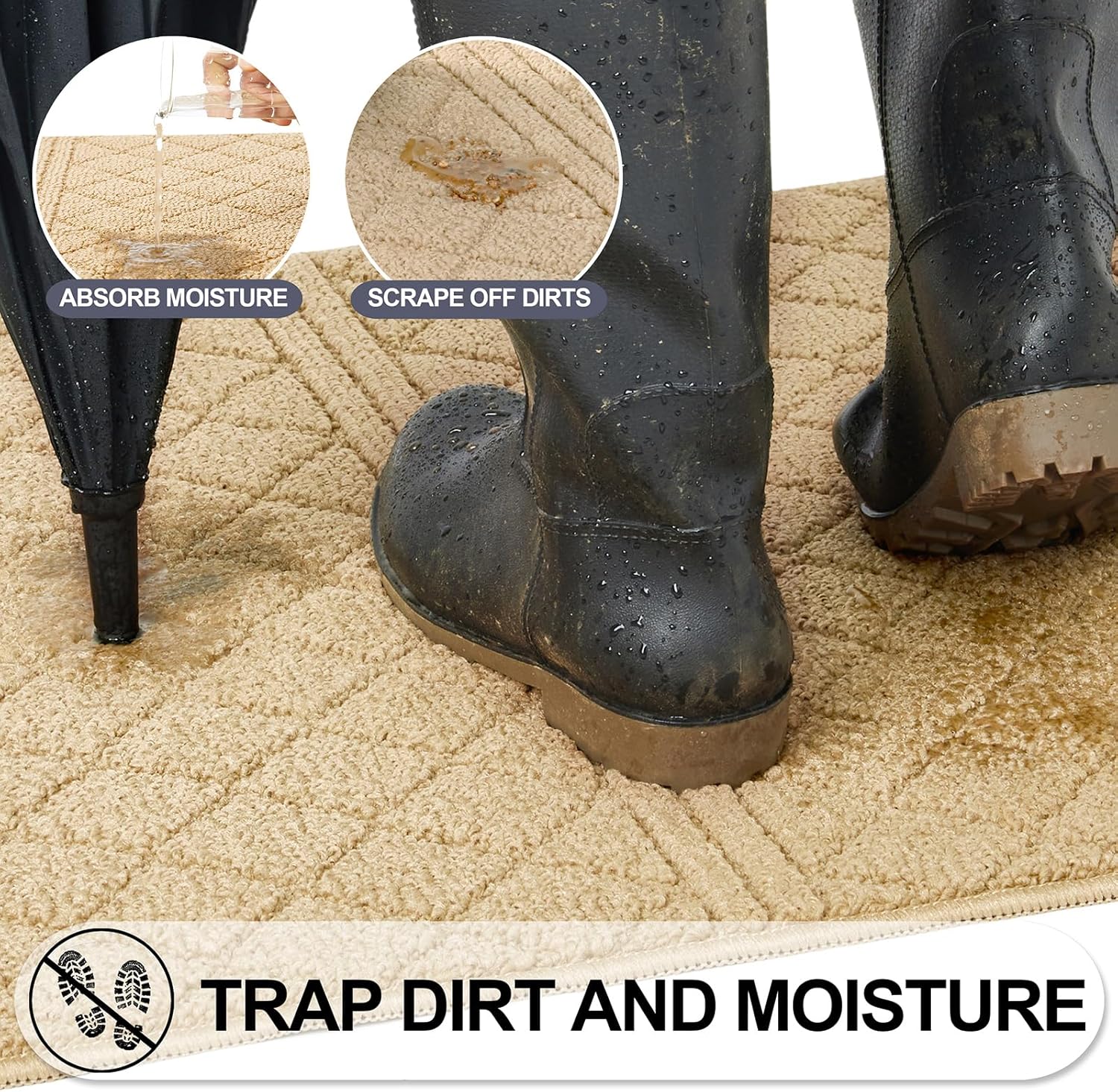 - 【TRAP DIRT & ABSORB MOISTURE】Eliminates dirty and wet foot prints when you entering the house. REFETONE door mat using double layer technology which helps to scrap off dirt, water, dust, grit, mud, sand, grass, slush, snow and absorb moisture from shoe. Say goodbye to messy floors and keep your indoor environment clean and tidy. Indoor doormat perfect for high-traffic areas and widely used for all seasons, especially for the rainy, snowy, or muddy weather. Enjoy your home every time!