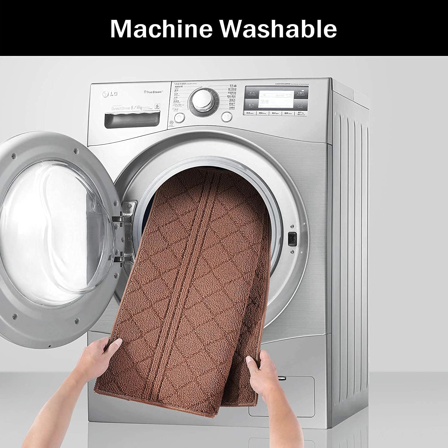- 【EASY TO CLEAN】When your doormat gets dirty, first shake it off outdoors or over your garbage bins, then sweep with a broom or vacuum regularly or use a garden hose to rinse the mat outdoors and place it in a sunny area to dry. For a deeper clean, machine wash separately in cold water, using mild detergent. Tumble dry, low heat. Do not use bleach or fabric softener. After multiple times machine wash test, color will not fade and will stay vibrant no matter how many times you wash and dry.