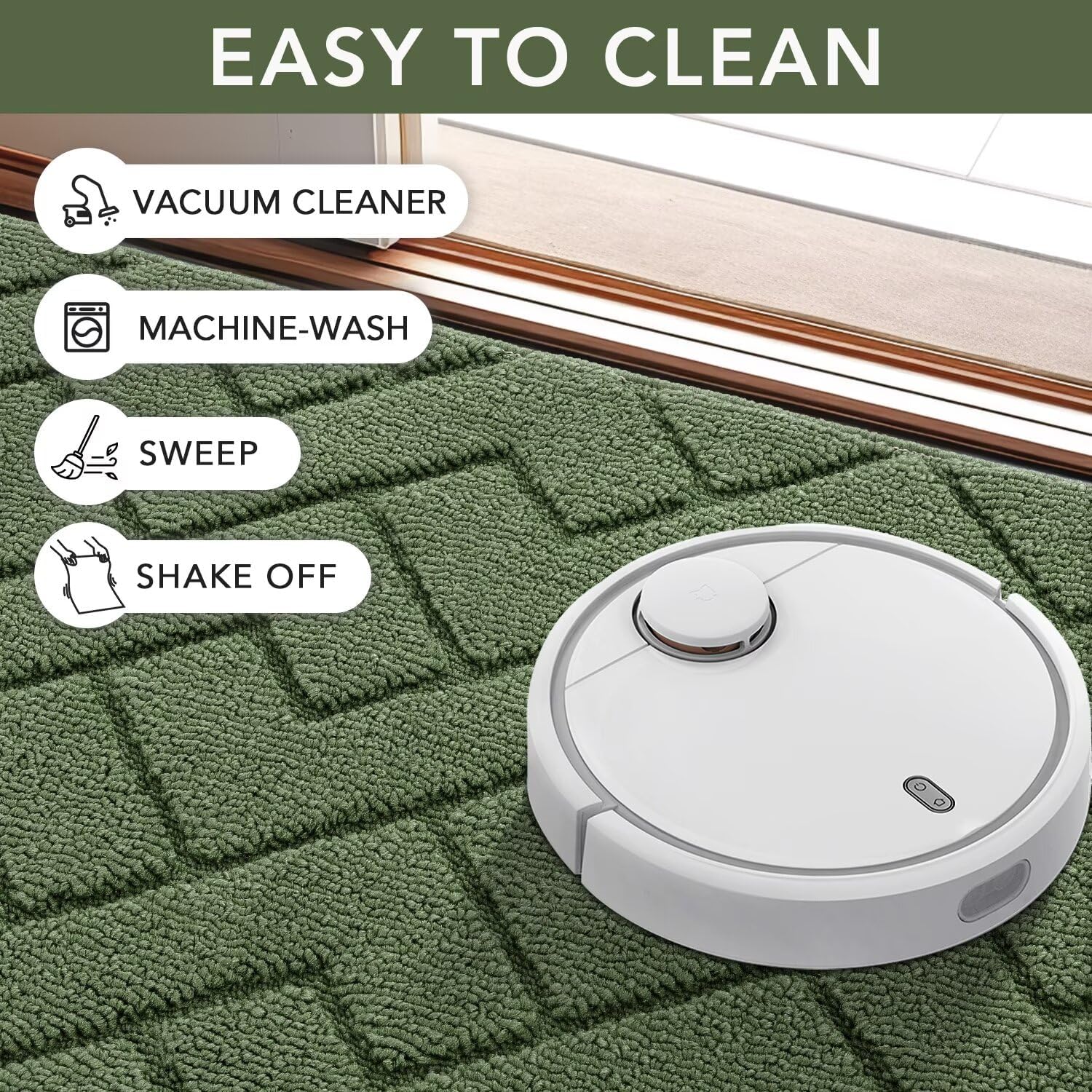 hicorfe Indoor Doormat,Front Back Door Mat TPR Backing Non Slip Mats 20"x31.5" Absorbent Resist Dirt Entrance Doormat Inside Floor for Entryway Washable Low-Profile(Green)