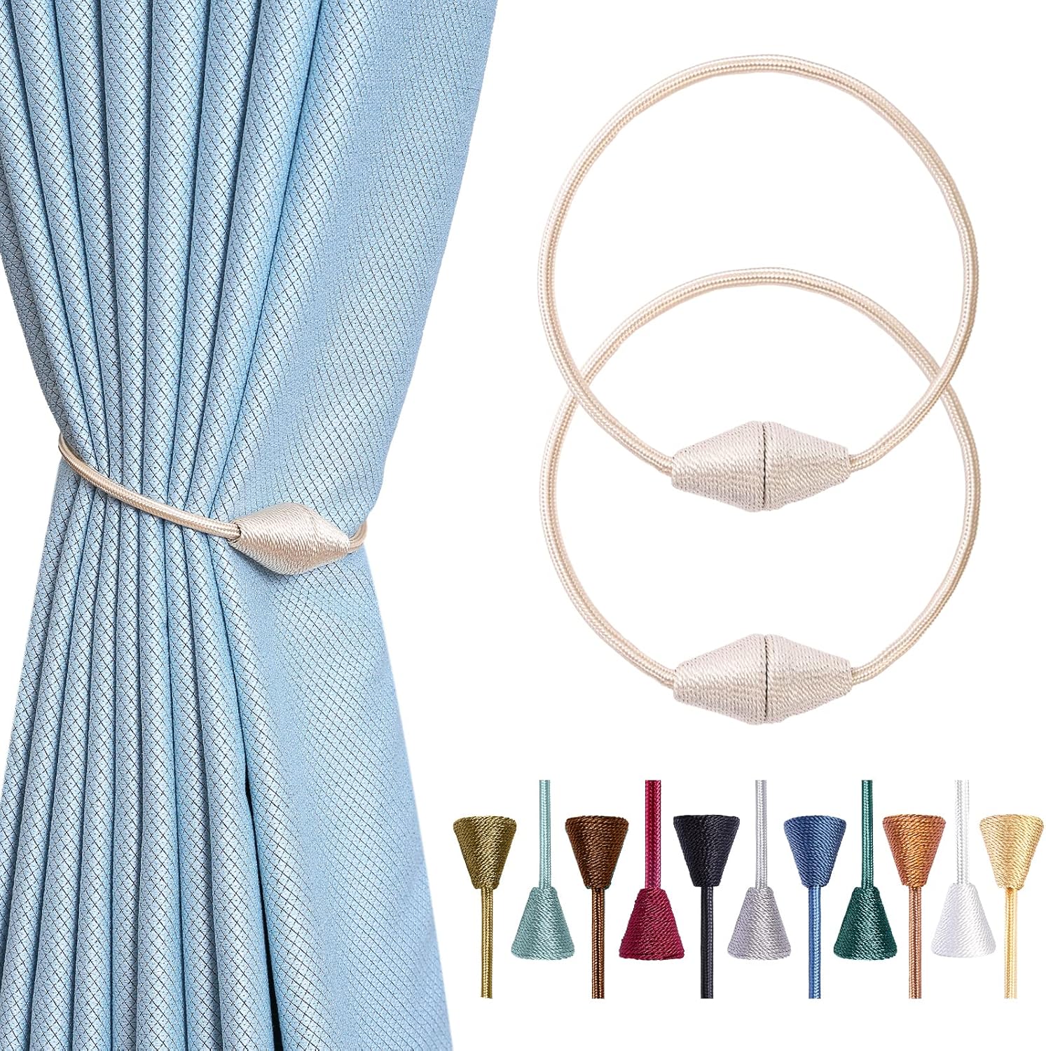 2 PCS Magnetic Curtain Tiebacks, European Style Convenient Drape Tie Backs Holdbacks for Thin or Thick Home & Office Window Draperies, No Tools Required(Beige)