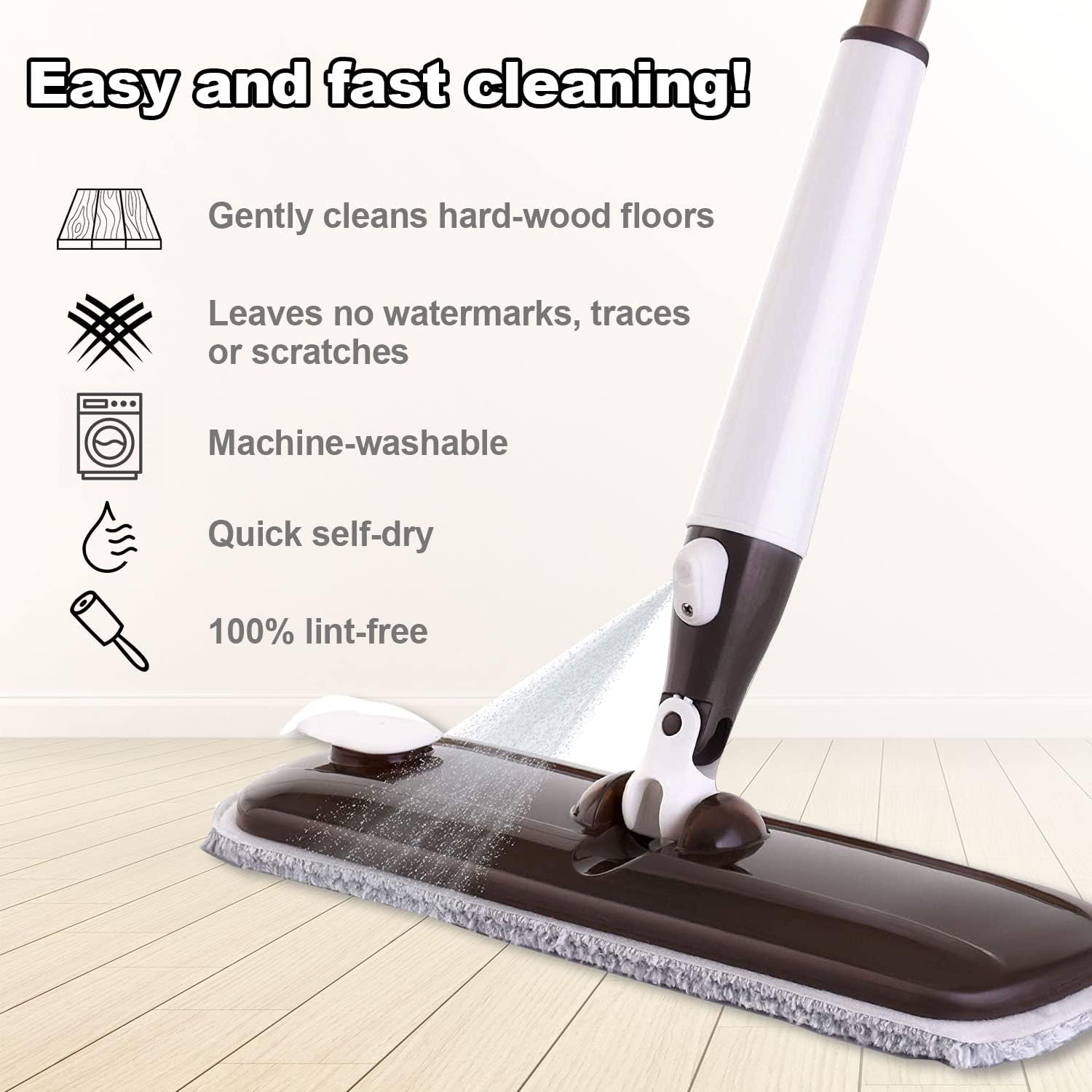 - Universal Fit – Compatible with most standard flat mops and spray mop systems; easy to attach and replace.
