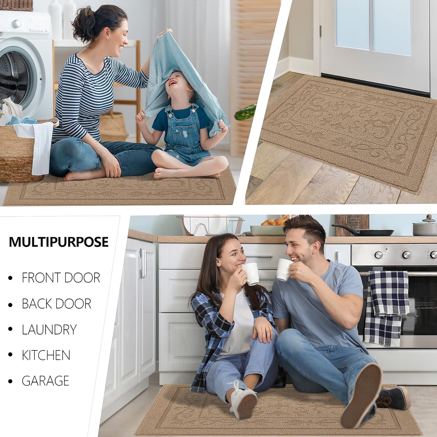 FONEYI Indoor Door Mat 24" x 36", Dirt Trapper Door Mats Non-Slip Entryway Rugs Washable, Absorbent Resist Dirt Welcome Mat, Low Profile Inside Floor Mats for Front Back Door and Entryway, Beige