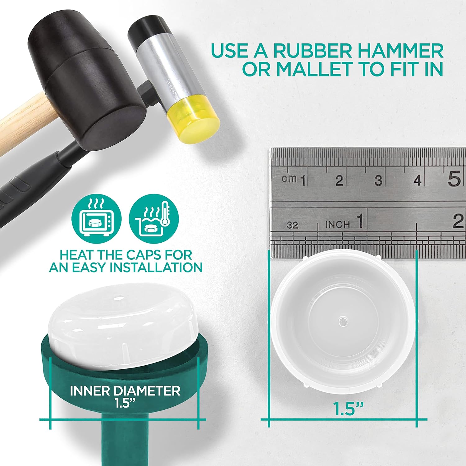 - A Breeze To Install - These round caps are meant to fit snugly onto chair legs with an inner diameter of 1.5”. Simply pop them into your furniture’s feet and hit using a rubber hammer or a mallet.