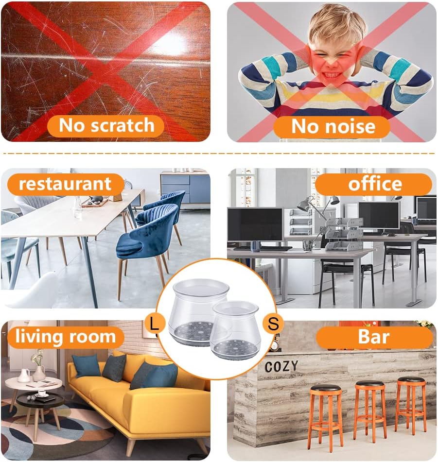 - 【The felt pad will not fall off】The package includes 32 pieces. Our upgraded silicone chair leg cover is equipped with a felt pad. We combine the felt and silicone into an integral part.