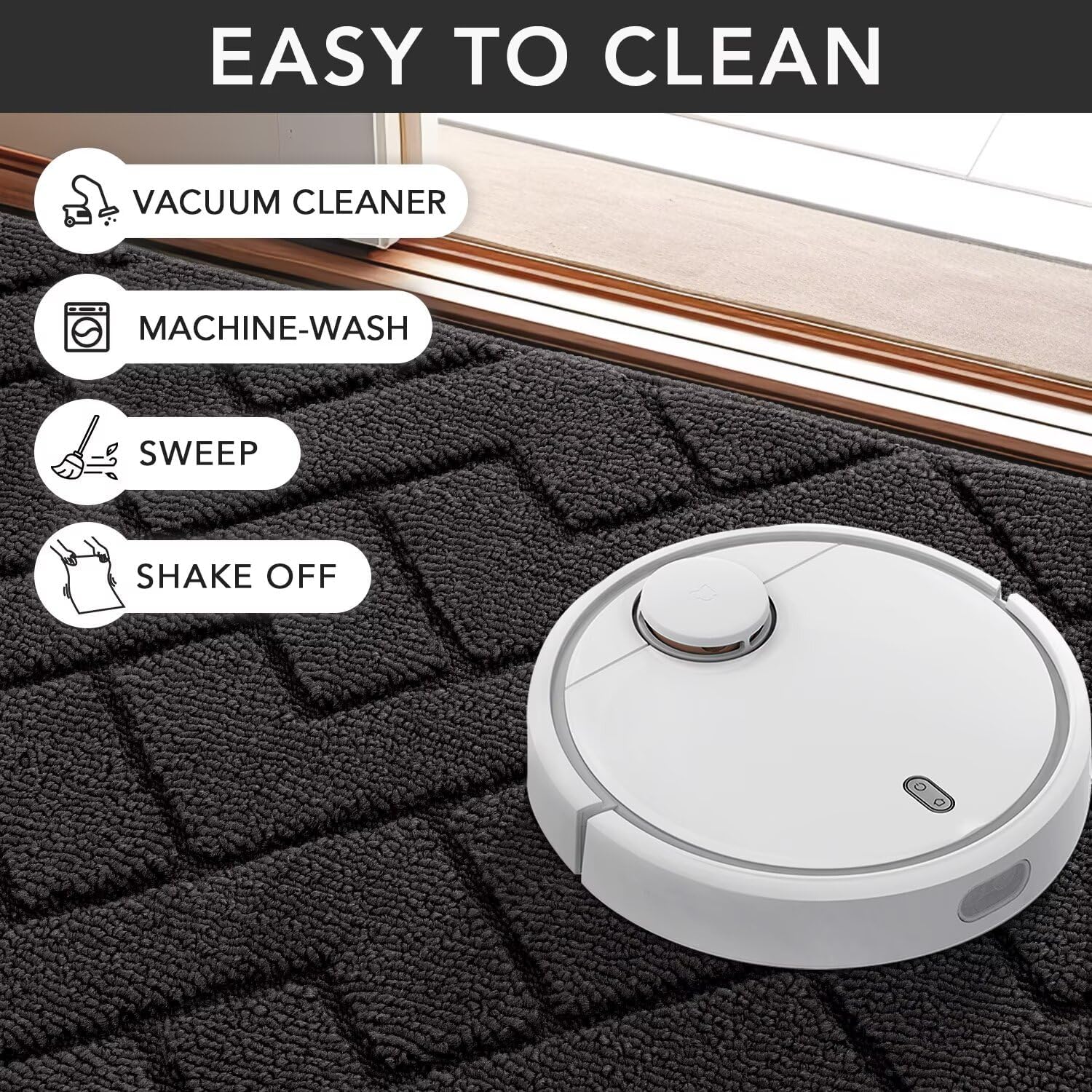 - EASY TO CLEAN: The unique rib fabric design removes dirt from shoes easily. When your doormat gets dirty, first shake it off outdoors or over your garbage bins, then sweep with a broom or vacuum regularly or use a garden hose to rinse the mat outdoors. For deeper clean: machine washable, use water under 86 (โ) / 30 (โ). Do not iron. Do not bleach. Do not expose it to the sun for a long time.