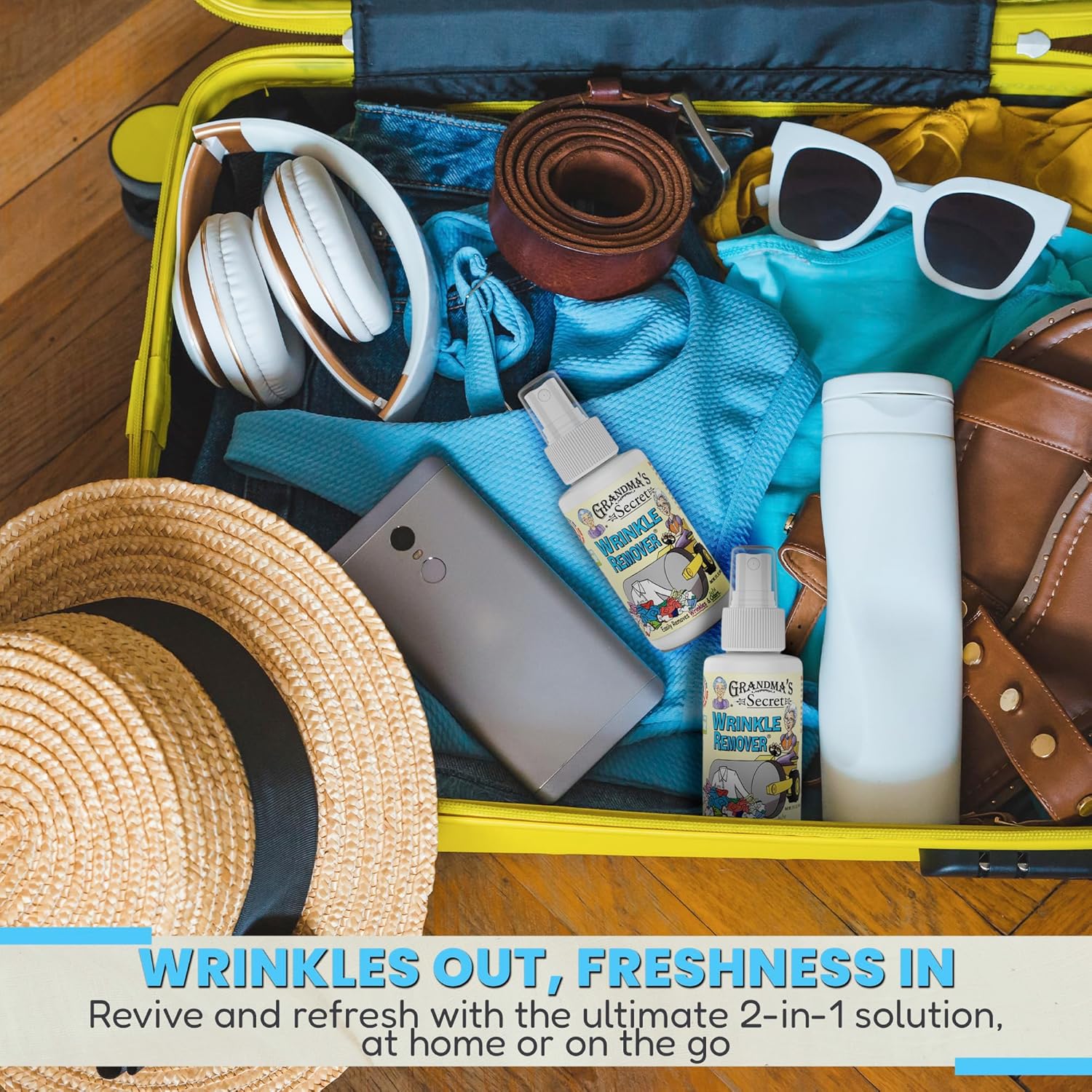 Grandma's Secret Wrinkle Remover - Wrinkle Release Spray, Odor Eliminator, and Fabric Refresher Spray - Chlorine and Bleach Free - 3 oz, 2 Pack