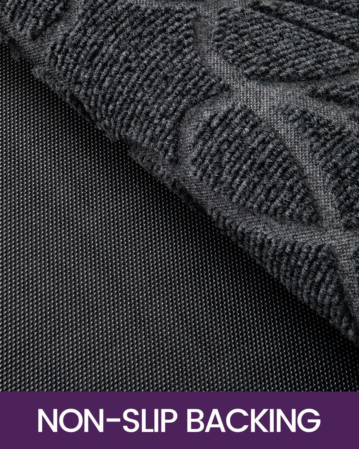 DEXI Front Door Mat Outside Entrance, Heavy Duty Non Slip Low Profile Doormat for Entryway, Trap Dirt and Moisture Welcome Mats, Easy Clean, Patio, Garage, 3x2, Grey