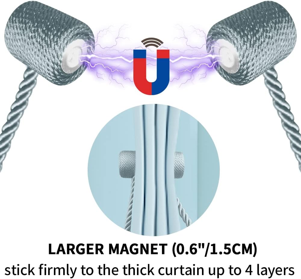 - "PREMIUM MATERIAL:Upgraded strong rare earth magnet with nickel plating which is smooth and durable. The magnet is strong, durable, and will not fall off. The brightly colored decorative braided rope is hand-woven with premium polyester cotton materials. The silk thread has high strength, strong toughness, is not easy to fall off,wear or pilling, adding a modern beauty to your windows "