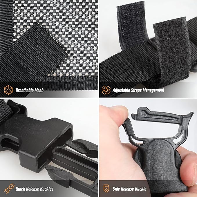 - DURABLE MATERIAL: Tactical harness made from strong nylon webbing. Mesh pad on the back offers extra support, make you back comfortable for carrying a heavy load of gear in your pouch.