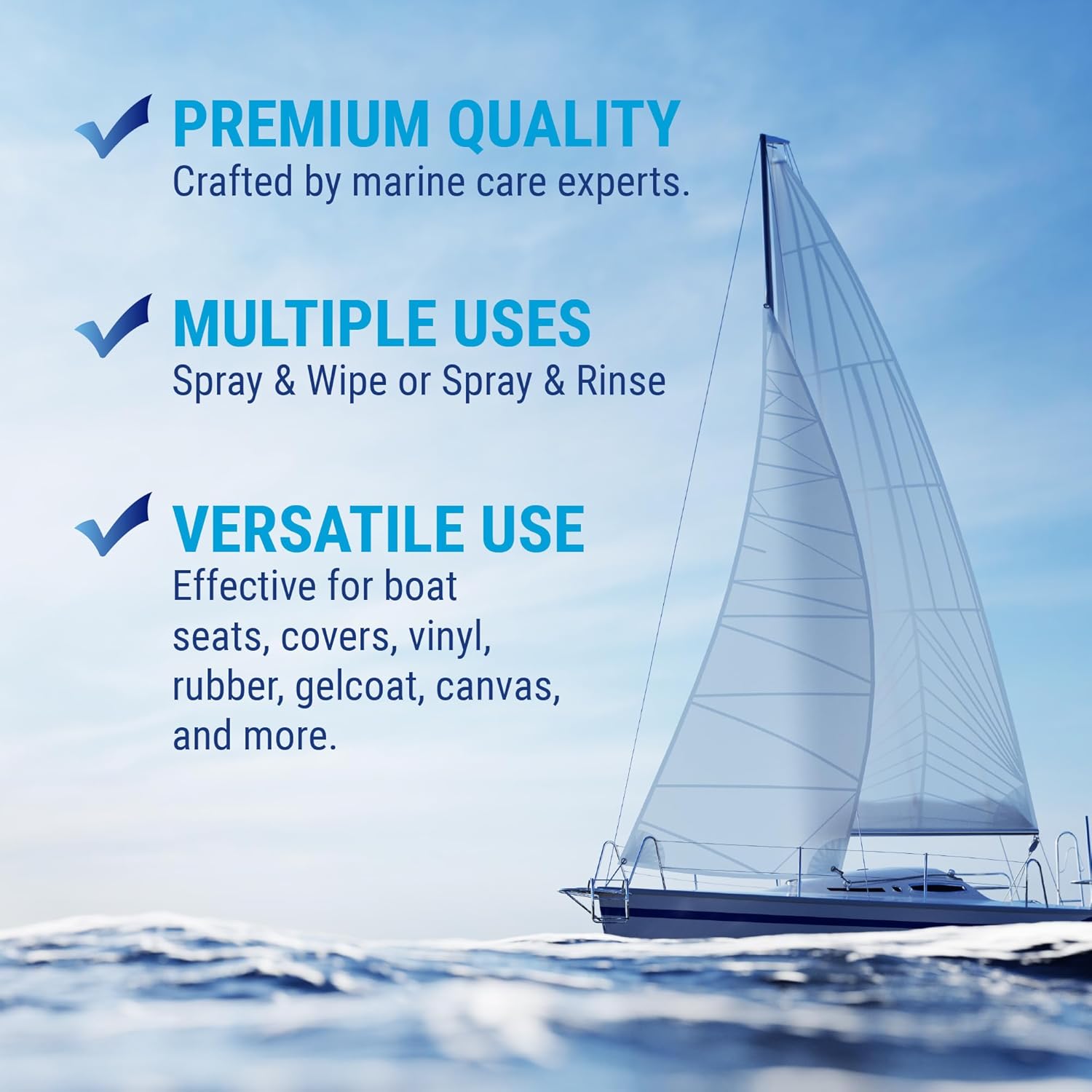 - VERSATILE APPLICATION: Ideal for use on boat interiors, vinyl cushions, fenders, life jackets, sails, etc. Make your vinyl boat seats, covers, cabin, deck, bumpers and more squeaky clean! Just donโt use on fabric or textile.