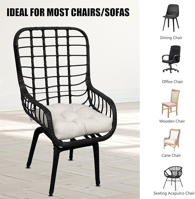 - Non-slip Design: With Full-length attached ties, you can conveniently secure the indoor-outdoor chair cushion to your seat. This multi-purpose cushion is perfect for kitchen dining table chairs, office chairs, outdoor chairs, and any other hard chair that needs additional comfort