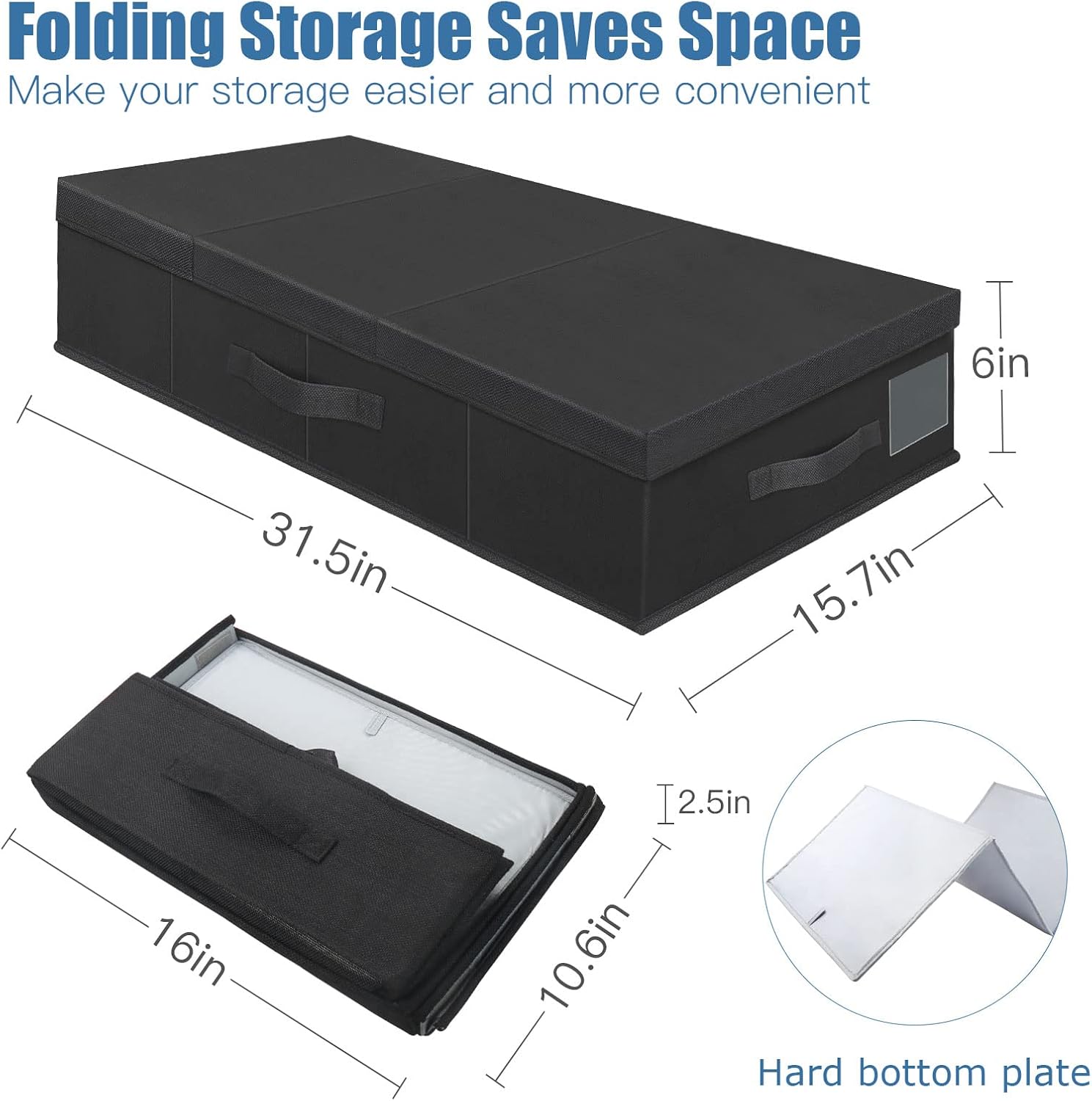 - Large Capacity Storage: Each under bed storage bin measures 31.5 X 15.7 X 6 inches(2 Pack), making it great for use as flat storage bins or under-bed storage drawers. Can store seasonal clothes, bedding, plush toys, shoes, daily sundries, etc. Make any room look more put-together and clean.