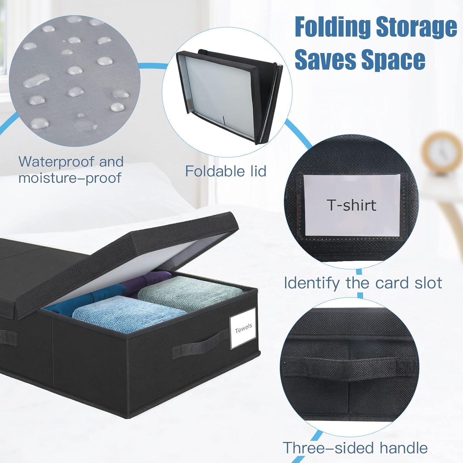 - Durable Material: The under-bed storage box is made of breathable linen fabric on the outside and made of Oxford cloth on the inside. 3 sided Reinforced handles make it easy to pull them out from under the bed.