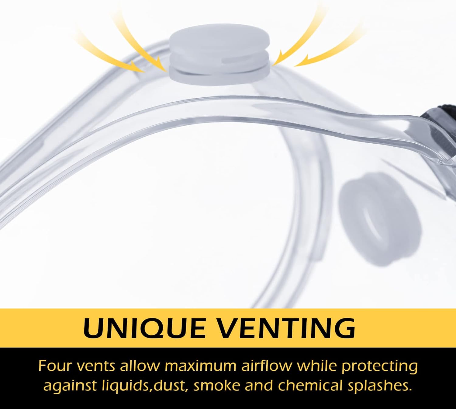 - Anti Fog and Ventilated: the lenses of eye protection goggles provide a clear and transparent visual effect, no dead angle, wide field of vision; 4 Vents allow maximum airflow while protecting eyes against liquids, some airborne particulates and dust