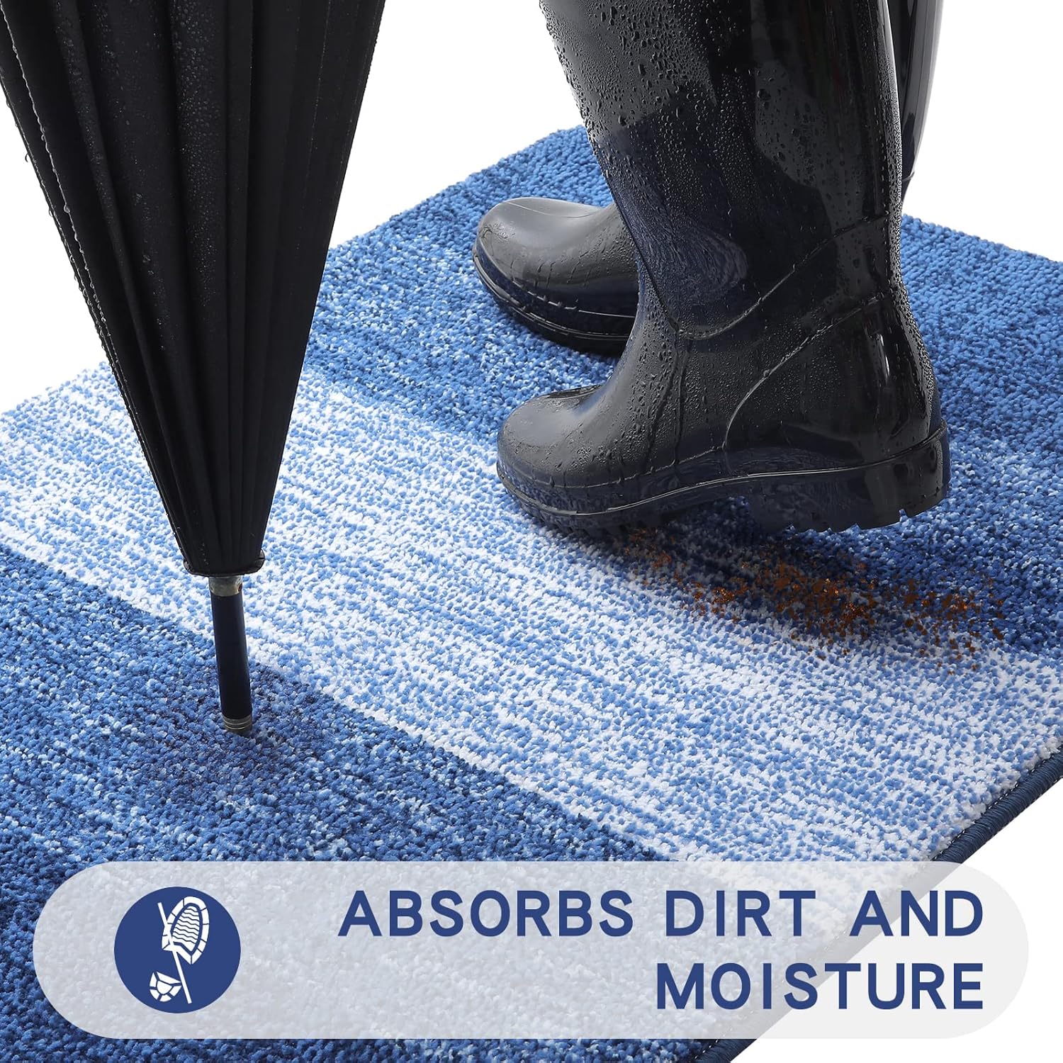 - ABSORBS MOISTURE AND DIRT:Kitinjoy indoor doormats effectively trap water, mud, and dirt. Countless polyester fibers keep indoor areas clean, and dry. Even rain, snow, or muddy weather can protect the floor from spills or stains.