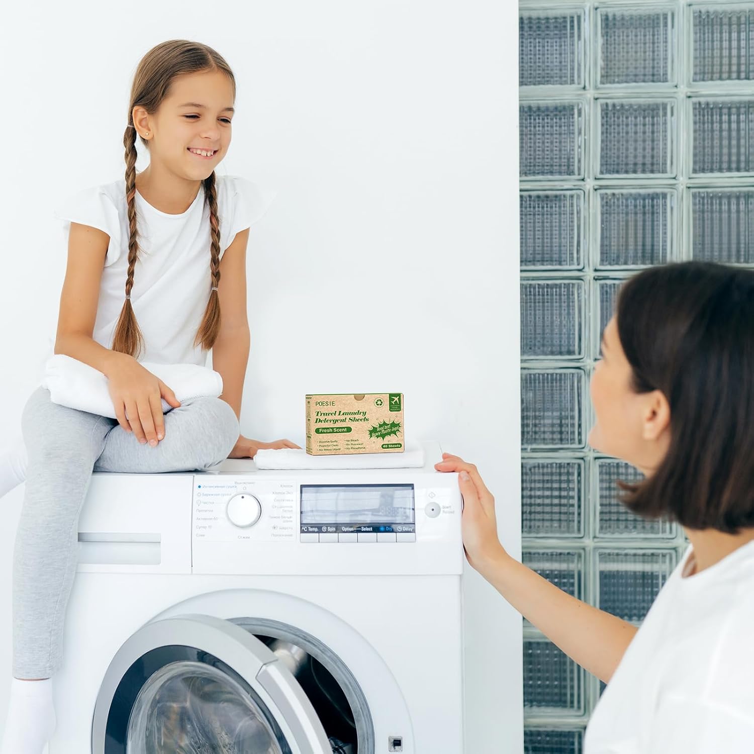 Poesie Laundry Detergent Sheets Washer Sheets for Travel Laundry Soap Sheet for Camping Hotel Dorm Home Laundromat College Fresh Scent 1 Box 40 Count