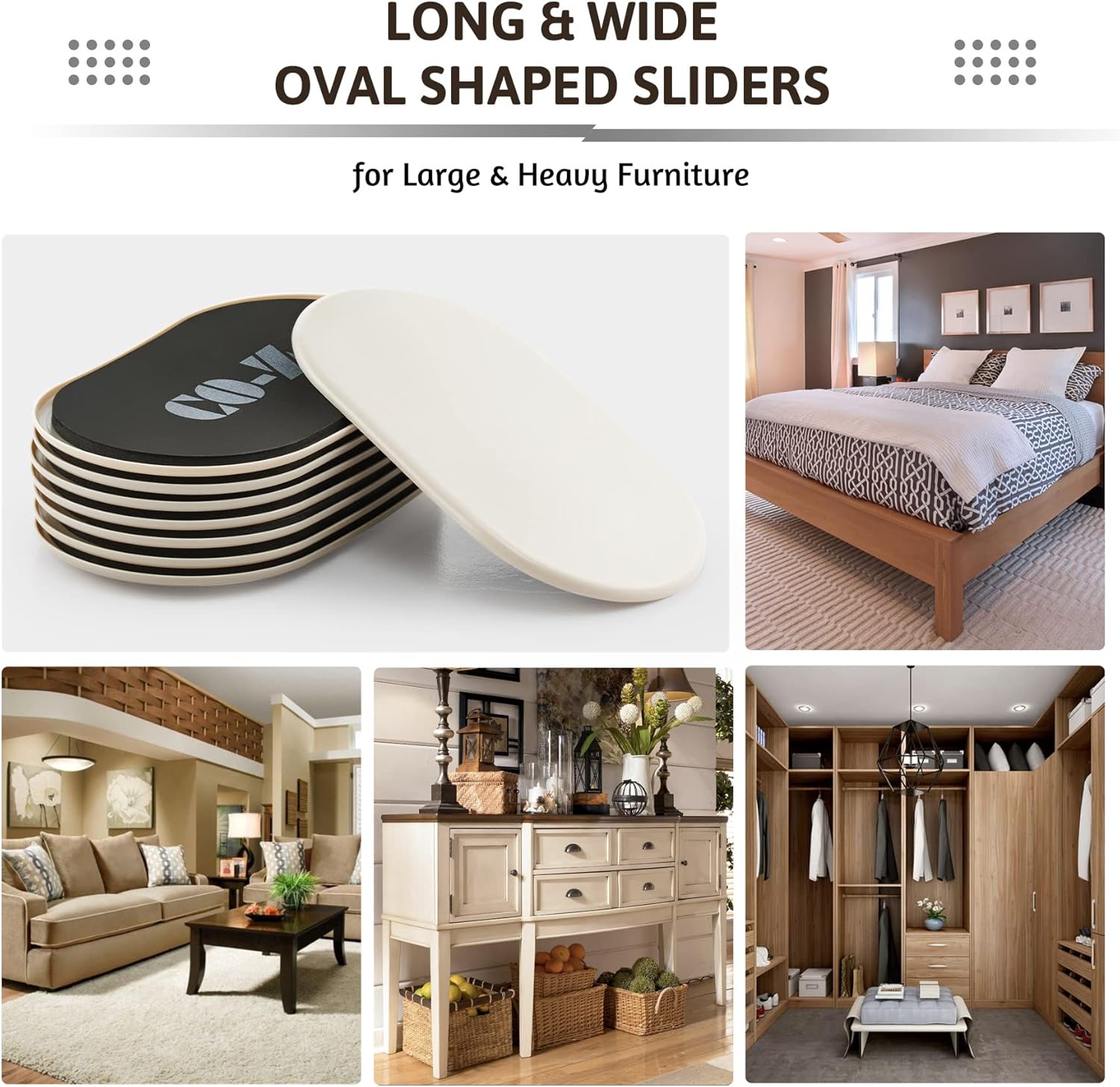 - 8-PIECE MOVING KIT: CO-Z's oval furniture slider kit supports up to 110 pounds, helping you easily move large heavy furniture across your flooring; measuring 5.7x9.4 in., our pads work with most furniture legs, including chairs, beds, cabinets, & more